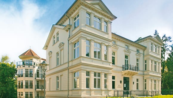 Das Ensemble Villa Usedom besteht aus einer repräsentativen (2004 sanierten) Gründerzeitvilla und einer großzügigen Neubauresidenz (2005 neu eröffnet). In unseren 33 Ferienapartments (40 - 65 qm) haben Sie mehr Raum für Ihre individuellen Urlaubsträume mit Hotelkomfort. Im Strandhotel Ostseeblick (nur 3 Gehminuten entfernt) sind wir rund um die Uhr für Sie da. Gerne können Sie das Frühstück mit Meerblick dazubuchen, unsere kulinarischen Angebote in den beiden Restaurants wahrnehmen oder in unserer atmosphärischen Strandlounge verweilen. Wir bieten einen Fahrrad- und Strandkorbverleih an.