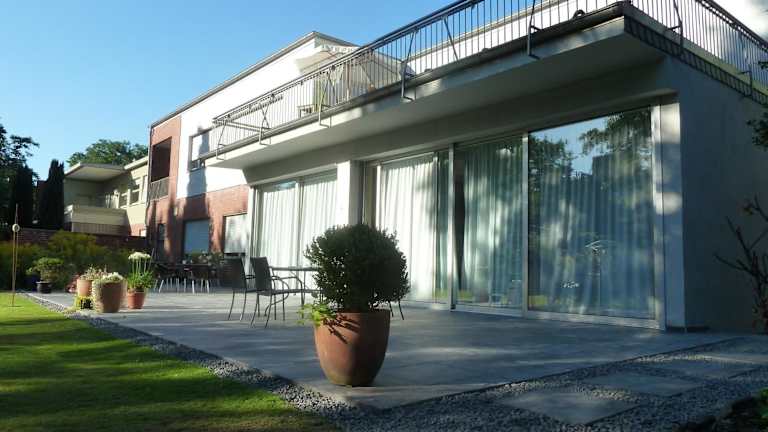 Die Villa V liegt inmitten einer grünen Umgebung und bietet einen herrlichen Blick auf die Natur. Sie befindet sich gegenüber dem Stadtgarten und ist nur 25 km von Düsseldorf und 50 km von Köln entfernt. In der Nähe der Villa finden Sie das historische Jugendstil-Schwimmbad und den Bahnhof Viersen, von wo aus Sie bequem das Rheinland, Holland und Belgien erkunden können. Die Lage zwischen den Erholungsgebieten an der Maas und dem Rhein macht die Villa V zum idealen Ausgangspunkt für Fahrradtouren und Wanderungen. Auch der Flughafen Düsseldorf, der Flughafen Weeze und das Designer Outlet Roermond sind gut erreichbar.