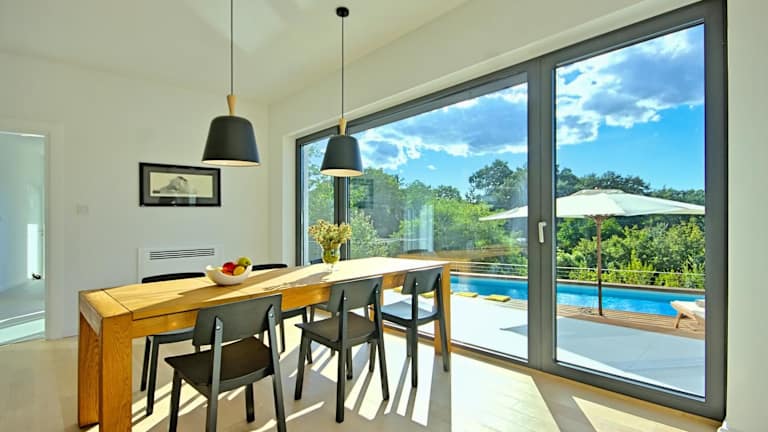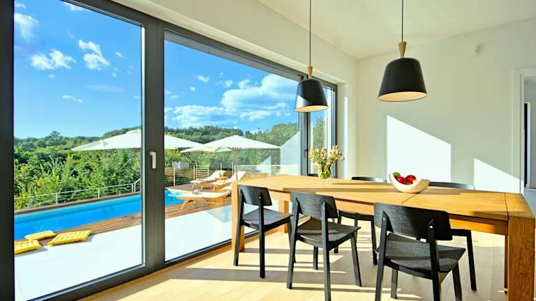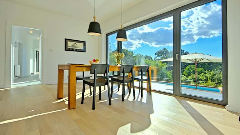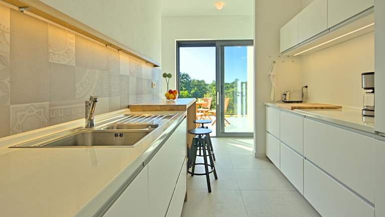 Die Villa verfügt über 3 Schlafzimmer und 2 Badezimmer. Weitere Annehmlichkeiten umfassen Bettwäsche, Handtücher, einen Flachbild-TV mit Kabelkanälen, einen Essbereich, eine voll ausgestattete Küche und eine Terrasse mit Ausblick auf den Pool.