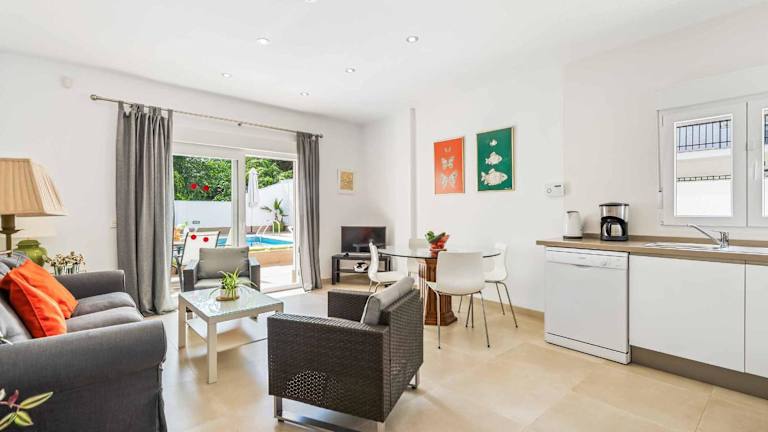 Die Villa Valeria bietet drei geräumige Schlafzimmer, eine voll ausgestattete Küche mit Kühlschrank und Geschirrspüler sowie drei moderne Badezimmer mit Dusche, Haartrockner und Waschmaschine. Die klimatisierten Zimmer sorgen für angenehme Temperaturen während Ihres Aufenthalts. Ein Flachbild-TV und kostenfreies WLAN stehen Ihnen ebenfalls zur Verfügung.