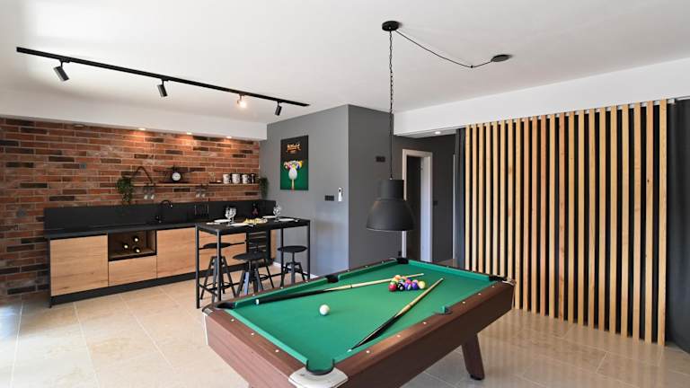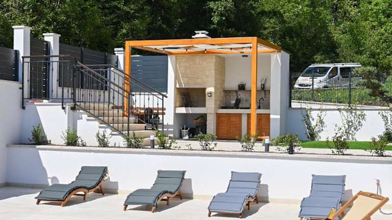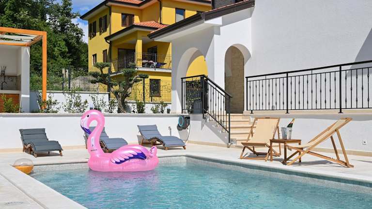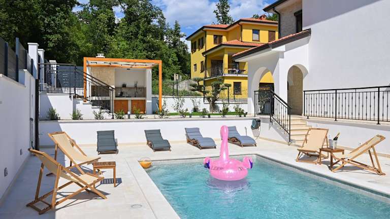 Verbringen Sie einen unvergesslichen Aufenthalt in der Villa Verde Blu - private beheizter Pool und Billard in Veprinac. Die Villa bietet Ihnen einen saisonalen Außenpool, einen Garten und eine Terrasse mit atemberaubendem Bergblick. Genießen Sie den Luxus eines eigenen Pools und profitieren Sie von kostenfreien Privatparkplätzen. Die Villa ist klimatisiert und verfügt über 4 Schlafzimmer, ein geräumiges Wohnzimmer, eine voll ausgestattete Küche und 3 Badezimmer. Handtücher und Bettwäsche werden gestellt. Die Umgebung lädt zu abwechslungsreichen Wanderungen ein. Besuchen Sie auch das Stadion Rujevica HNK Rijeka oder das Maritime und Historische Museum des kroatischen Küstenlandes, die beide in der Nähe der Villa liegen. Der Flughafen Rijeka ist nur 44 km entfernt.