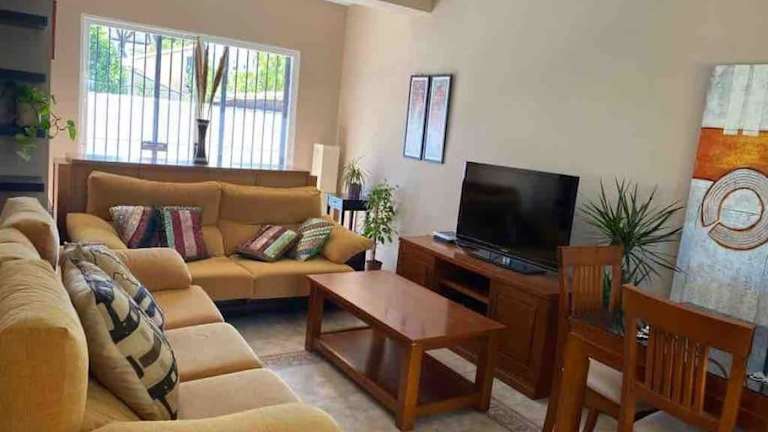 Die Unterkunft umfasst ein klimatisiertes Ferienhaus mit 3 Schlafzimmern und einem Wohnzimmer. Eine voll ausgestattete Küche mit Kühlschrank und Kaffeemaschine sowie 2 Badezimmer mit Dusche und Haartrockner sind ebenfalls vorhanden. Handtücher und Bettwäsche werden bereitgestellt.