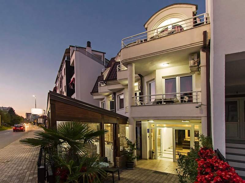 Die Villa Veron ist ein modernes und stilvolles Hotel in Ohrid, das nur 100 m vom Ohridsee entfernt liegt. Mit kostenfreiem WLAN, einem gemütlichen Balkon und einer eleganten Schwarz-Weiß-Einrichtung bietet das Hotel seinen Gästen einen angenehmen Aufenthalt. Entspannen Sie auf der Außenterrasse oder erkunden Sie die Umgebung mit den Leihfahrrädern des Hotels. Die zentrale Lage ermöglicht es Ihnen, den Yachthafen von Ohrid und die Einkaufsstraße Partizanska in nur wenigen Minuten zu erreichen. Der Flughafen Ohrid ist ebenfalls nur eine kurze Fahrt entfernt. Kostenlose Parkplätze stehen in der Nähe zur Verfügung.