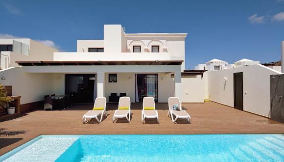 Die Villa Victoria in Playa Blanca ist der perfekte Ort für einen entspannten Urlaub. Genießen Sie den atemberaubenden Blick auf die Berge von Ihrem eigenen Balkon aus und erfrischen Sie sich im Außenpool. Die Villa bietet Ihnen auch Grillmöglichkeiten, um gemütliche Abende im Freien zu verbringen. Der Strand Montana Roja ist nur wenige Gehminuten entfernt und der Strand La Campana ist in 19 Minuten zu Fuß erreichbar. Kostenlose Privatparkplätze stehen Ihnen zur Verfügung. Die Umgebung bietet viele Aktivitäten wie Wandern und Tischtennis. Die Villa verfügt über 3 Schlafzimmer, 3 Badezimmer, einen Flachbild-Sat-TV und eine voll ausgestattete Küche. Entspannen Sie auf der Terrasse und genießen Sie den Meerblick. Die Villa ist klimatisiert und bietet auch einen Sitzbereich und eine Waschmaschine. Fahrradverleih und Autovermietung sind ebenfalls möglich. Der Strand Flamingo ist 3 km entfernt und der Parque Nacional de Timanfaya ist 23 km entfernt. Der nächstgelegene Flughafen ist der Flughafen Lanzarote, der 33 km von der Unterkunft entfernt ist.