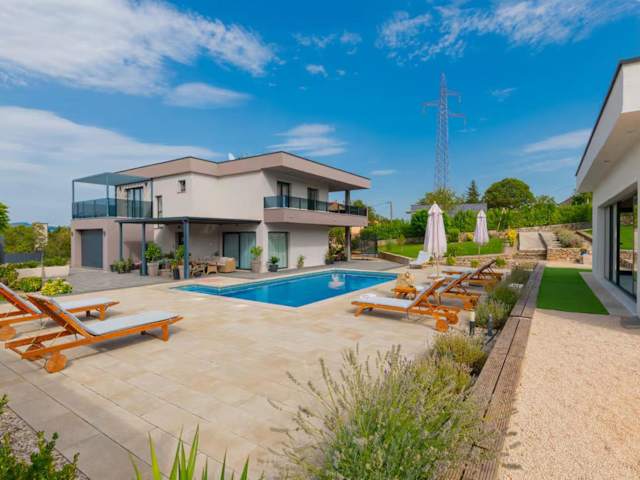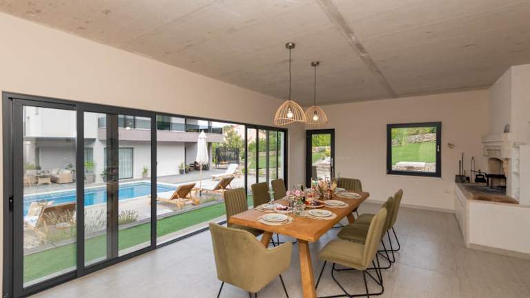 Die Villa Viktoria ist eine klimatisierte Villa mit 3 Schlafzimmern, einem geräumigen Wohnzimmer und einer voll ausgestatteten Küche. Die Villa bietet auch 3 Badezimmer mit Dusche und Haartrockner. Handtücher und Bettwäsche werden in der Villa zur Verfügung gestellt. Genießen Sie den Komfort und die Annehmlichkeiten dieser luxuriösen Villa während Ihres Aufenthalts.