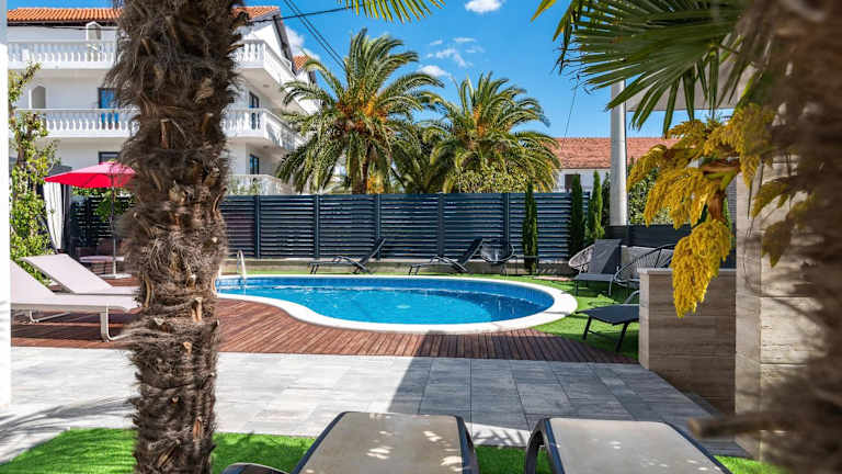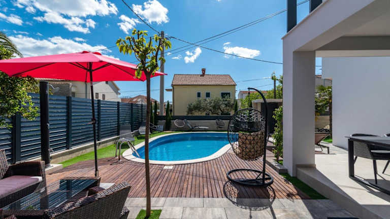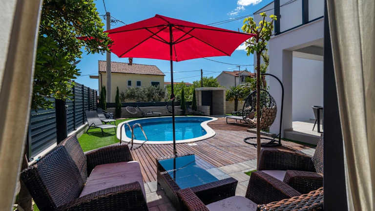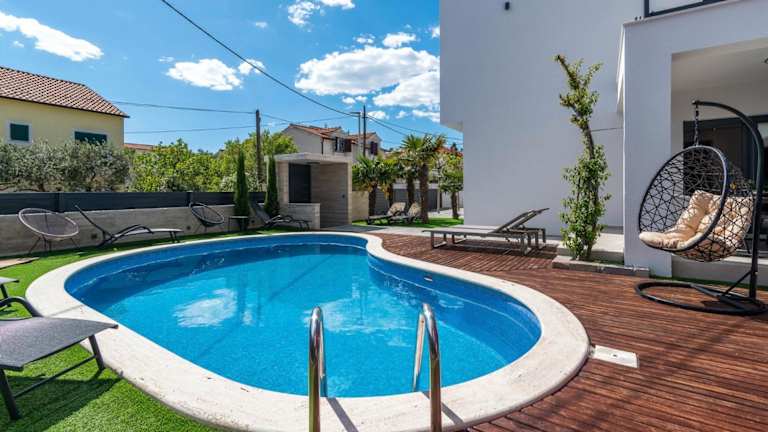 Die Villa Vodice in Vodice bietet Platz für 8 Personen und ist eine gut ausgestattete Unterkunft mit einem Balkon sowie kostenlosem WLAN. Zur Ausstattung gehören ein eigener Pool, ein Garten und ein kostenloser Privatparkplatz. Die gesamte Unterkunft ist klimatisiert und ermöglicht einen komfortablen Aufenthalt.