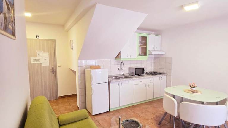 Die Apartments im Hotel Vugica Šilo sind gemütlich und komfortabel eingerichtet. Jedes Apartment verfügt über Sat-TV, einen eigenen Balkon oder eine Terrasse und eine voll ausgestattete Küchenzeile mit einem Essbereich. Die Apartments bieten Ihnen somit alles, was Sie für einen angenehmen Aufenthalt benötigen.