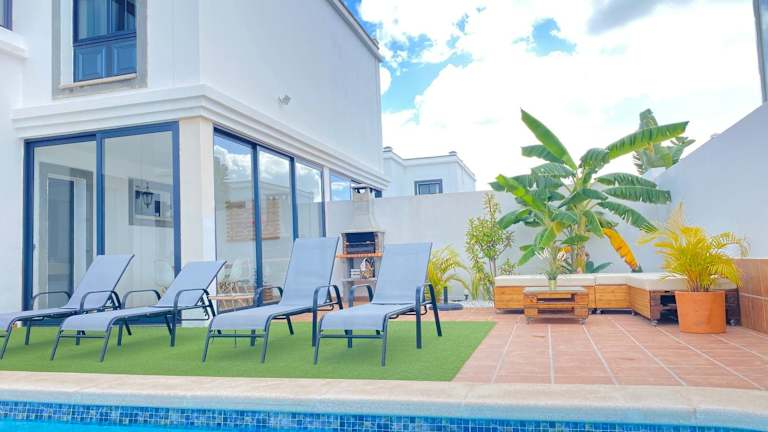 Die klimatisierte Villa verfügt über 3 Schlafzimmer, ein Wohnzimmer und eine voll ausgestattete Küche mit Kühlschrank und Kaffeemaschine. Es gibt 2 Badezimmer mit Dusche und Haartrockner. Handtücher und Bettwäsche werden gestellt.
