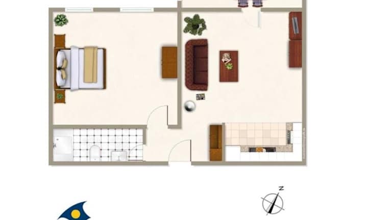 Die Ferienwohnung verfügt über ein Schlafzimmer, kostenloses WLAN, einen Satelliten-Flachbild-TV und eine Küchenzeile mit Kühlschrank und Geschirrspüler.