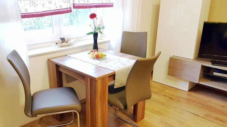 Die Apartments in der Ferienwohnungen Villa Waldblick sind hell und modern eingerichtet. Sie verfügen über eine komfortable Ausstattung, die Ihnen einen angenehmen Aufenthalt ermöglicht. Zur Ausstattung gehören ein Flachbild-Sat-TV, ein Sofa und eine Kaffeemaschine. Der Essbereich in Ihrem Apartment bietet Ihnen die Möglichkeit, selbstgemachte Mahlzeiten zu genießen. Wenn Sie keine Lust zum Kochen haben, können Sie auch eines der Restaurants in der Umgebung besuchen, die innerhalb von 5 Gehminuten erreichbar sind. Ein Brötchenlieferservice steht Ihnen ebenfalls zur Verfügung.