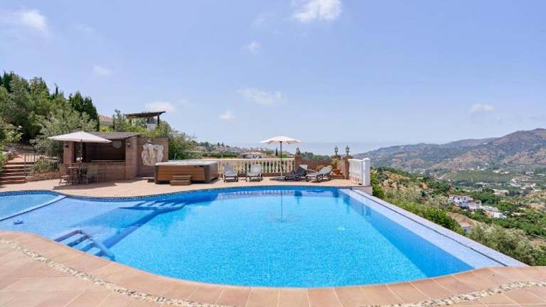 Die Villa With Infinity Pool Hot Tub in Frigiliana ist eine traumhafte Unterkunft, die mit ihrem eigenen Pool, einem Whirlpool und einem herrlichen Bergblick beeindruckt. Die Villa bietet Platz für bis zu 8 Personen und verfügt über 4 Schlafzimmer, ein geräumiges Wohnzimmer und eine voll ausgestattete Küche. Sie können sich auf einen erholsamen Aufenthalt freuen und die Annehmlichkeiten wie den Billardtisch und die Tischtennisplatte nutzen. Genießen Sie die Privatsphäre und den Komfort dieser Villa, die Ihnen einen unvergesslichen Urlaub bietet.