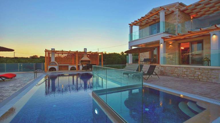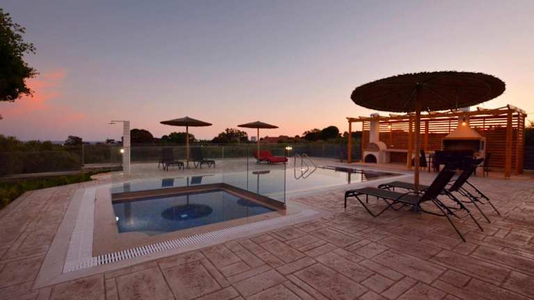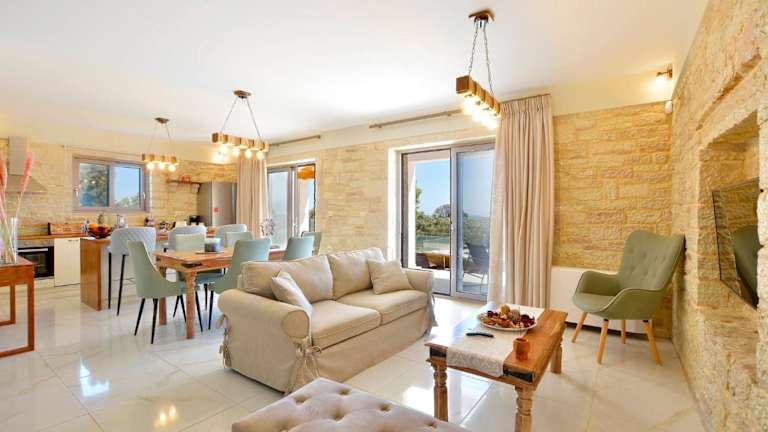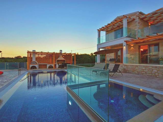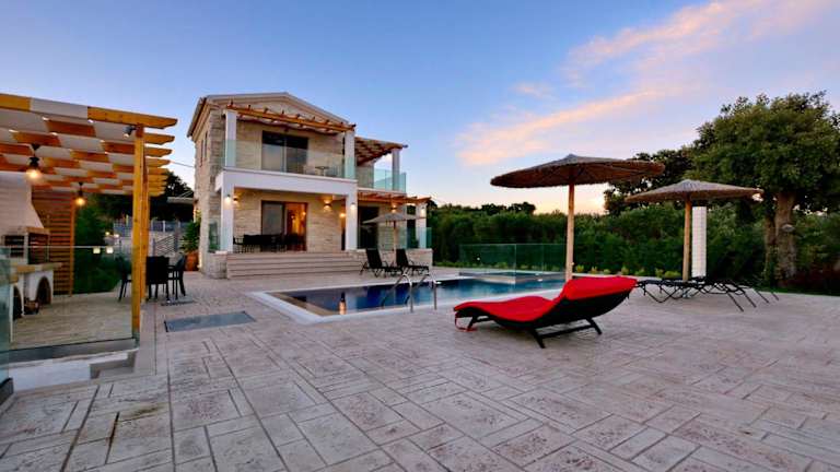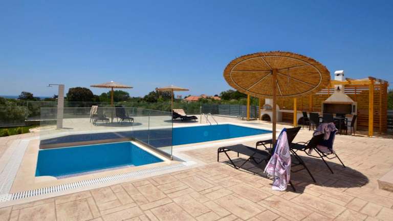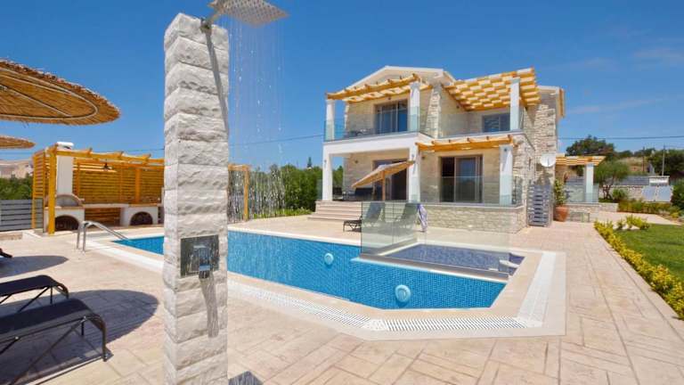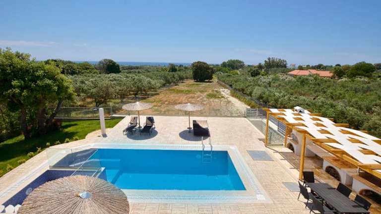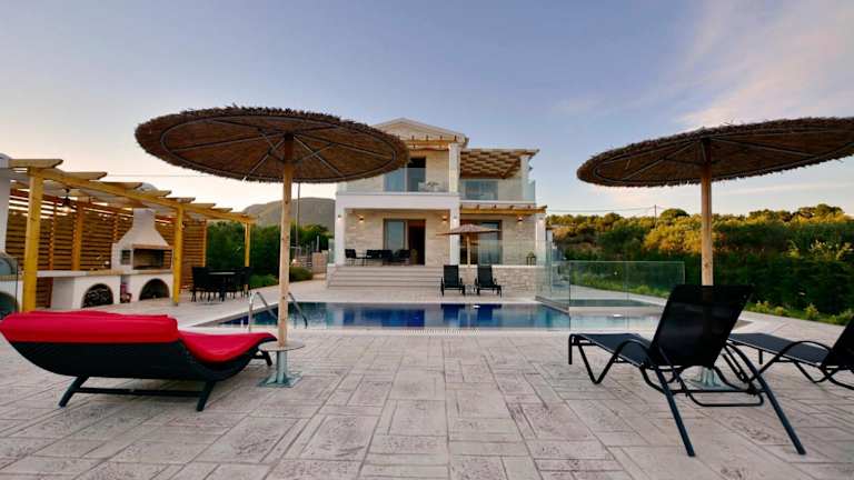 Die Villa Zeas verfügt über drei geräumige Schlafzimmer und drei Badezimmer. Alle Zimmer sind geschmackvoll eingerichtet und bieten einen Balkon mit Pool- und Gartenblick. Die Villa ist mit einem Flachbild-TV, einem Essbereich und einer voll ausgestatteten Küche ausgestattet. Die Terrasse bietet einen wunderschönen Meerblick und der Garten verfügt über Grillmöglichkeiten, um gemütliche Abende im Freien zu verbringen.