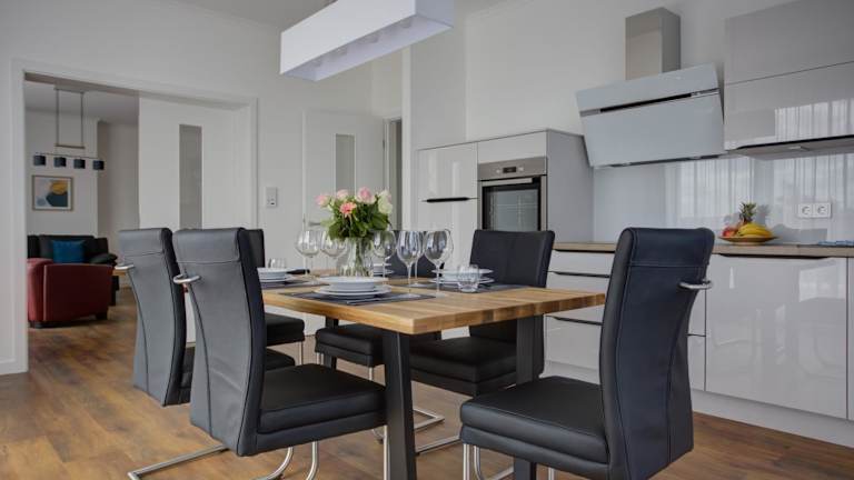 Im Juni 2020 erhielt die Villa Zeitlos ihren letzten Feinschliff und steht Ostseeliebhabern für erholsame, schöne Urlaubstage zur Verfügung. Elf Premium-Ferienwohnungen davon zwei einzigartige Penthouse-Wohnungen verfügen über eine exklusive und hochwertige Ausstattung. Ein 4K-Fernseher, eine Sofalandschaft sowie eine Fußbodenheizung sind bei uns genauso selbstverständlich wie der kostenlose Zugang zum WLAN in allen Wohnungen. Darüber hinaus ist es in jeder Wohnung dank einer vollständig ausgestatteten Küche, mit Herd, Backofen und Geschirrspüler, möglich Speisen in aller Ruhe selbst zuzubereiten. Durch die überschaubare Anzahl der Wohnungen ist es, verglichen mit großen Häusern, sehr ruhig.