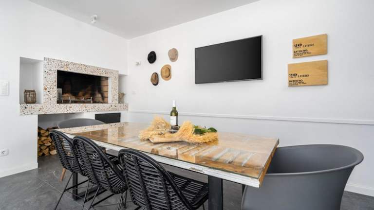 Die Villa verfügt über eine Sommerküche, in der Sie Ihre eigenen Mahlzeiten zubereiten können. Alternativ gibt es in der Umgebung auch Restaurants, in denen Sie lokale Spezialitäten genießen können.