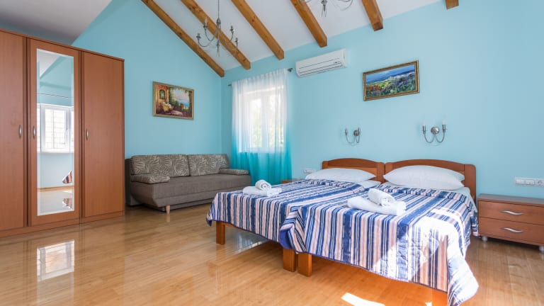 Die Villa Zlata bietet 5 geräumige Schlafzimmer, die Platz für eine große Familie oder eine Gruppe von Freunden bieten. Das Wohnzimmer ist komfortabel eingerichtet und verfügt über einen Flachbild-TV. Die voll ausgestattete Küche bietet alle Annehmlichkeiten, die Sie benötigen, einschließlich eines Geschirrspülers. Das Badezimmer ist luxuriös und verfügt über einen Whirlpool, in dem Sie sich nach einem langen Tag entspannen können. Zusätzlich gibt es einen Balkon, auf dem Sie die frische Luft und den Meerblick genießen können.