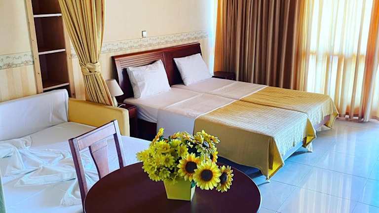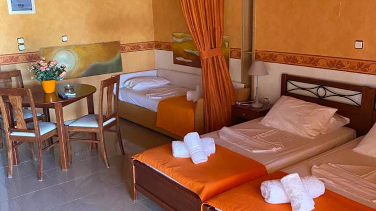Im Village Dimopoulos gibt es ein Fitnesscenter, in dem Sie sich fit halten können. Darüber hinaus bietet die Umgebung zahlreiche Freizeitmöglichkeiten, darunter Wassersportaktivitäten am Strand, Wanderungen in der Natur und Ausflüge zu nahegelegenen Sehenswürdigkeiten. Erkunden Sie die malerischen Städte und Dörfer in der Umgebung oder genießen Sie einfach die Sonne und das Meer am Strand.