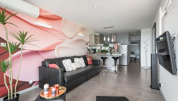 Das klimatisierte Apartment bietet ein komfortables Schlafzimmer, eine gut ausgestattete Küche mit Kühlschrank und Backofen, einen gemütlichen Sitzbereich und ein modernes Badezimmer mit Dusche. Handtücher und Bettwäsche können gegen Aufpreis bereitgestellt werden. WLAN ist kostenlos verfügbar und Privatparkplätze stehen ebenfalls zur Verfügung.