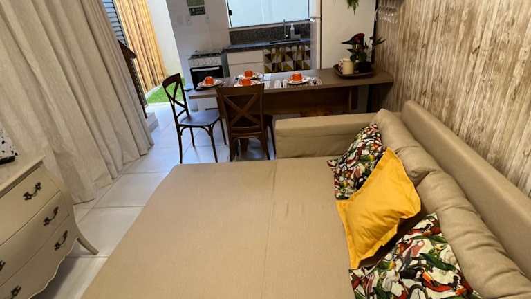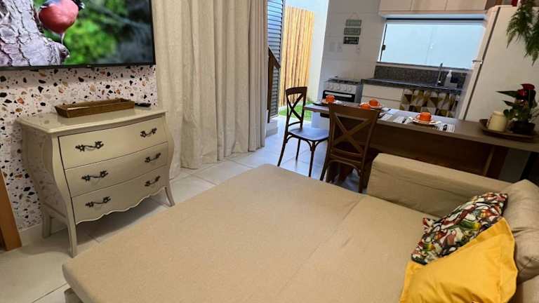 Village Ninho da Jandaia ist eine Ferienwohnung, die Zugang zu einem Außenpool, einem eigenen Strandbereich und einer Gemeinschaftsküche bietet. Die Unterkunft verfügt zudem über einen eigenen Pool, einen Garten, einen Grill und kostenloses WLAN. Gebührenfreier Privatparkplatz ist ebenfalls verfügbar.