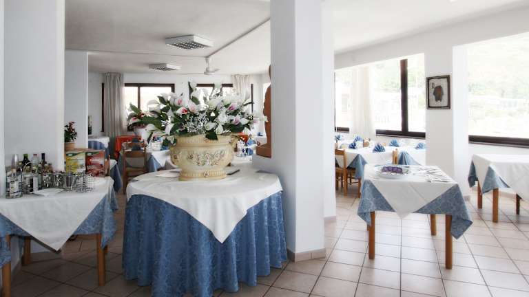 Die Unterkunft bietet ein Restaurant sowie eine Bar und ermöglicht den Gästen die Wahl zwischen Halbpension und Vollpension. Die drei Hauptmahlzeiten werden in Menüform serviert und sind vielfältig gestaltet.
