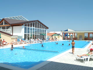 Entspannen Sie am Außenpool oder nehmen Sie ein erfrischendes Bad im Kinderpool. Die Sonnenterrasse ist der perfekte Ort, um die Sonne zu genießen und sich zu entspannen.