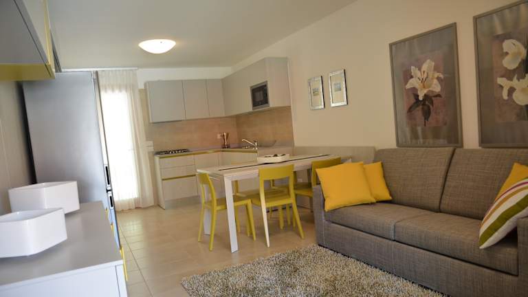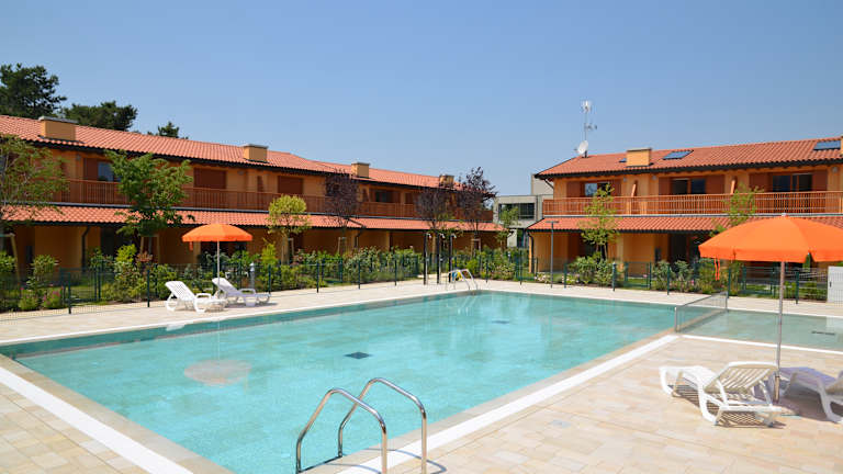 Neu gebautes Feriendorf, komplett eingezäunt bestehend aus 28 zweistöckigen Reihen-Wohneinheiten. Die gesamte Konstruktion ist mit einer gemeinschaftlicher Grünfläche mit Swimmingpool und Sonnenterrasse ausgestattet. Das Feriendorf liegt ca. 500 m vom Strand und ca. 600 Ortszentrum. Jede Einheit verfügt über eine überdachte Terrasse mit Kamin und einen privaten eingezäunten Garten, Parkplatz unter der Pergola oder Garage, Klimaanlage, Sat-Tv, Waschmaschine, Geschirrspueler, Wandsafe und Videogegensprechanlage.