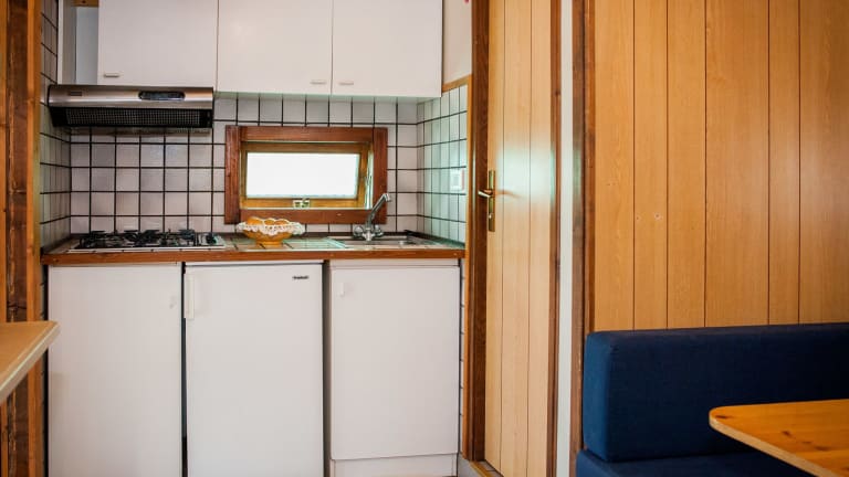 Die Bungalows sind mit einer kleinen Veranda ausgestattet und verfügen über einen Wohnbereich mit Küchenzeile sowie ein Bad mit Dusche. Kücheutensilien und Reinigungsprodukte sind nicht verfügbar.