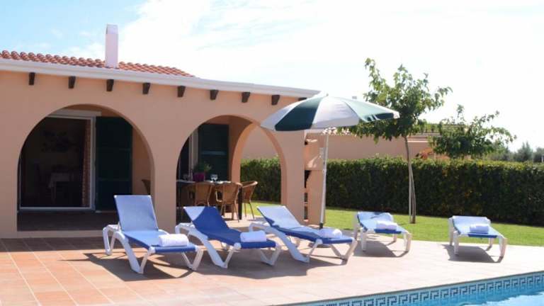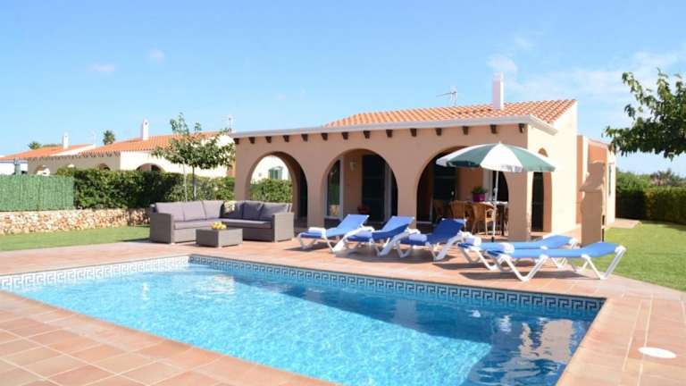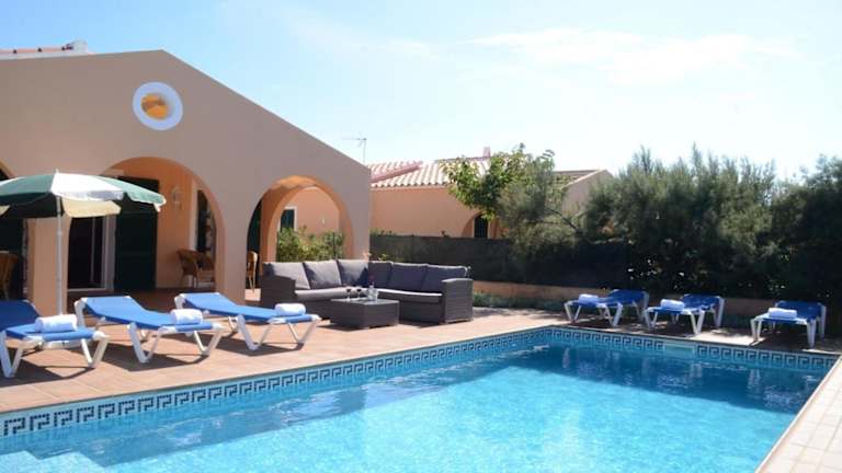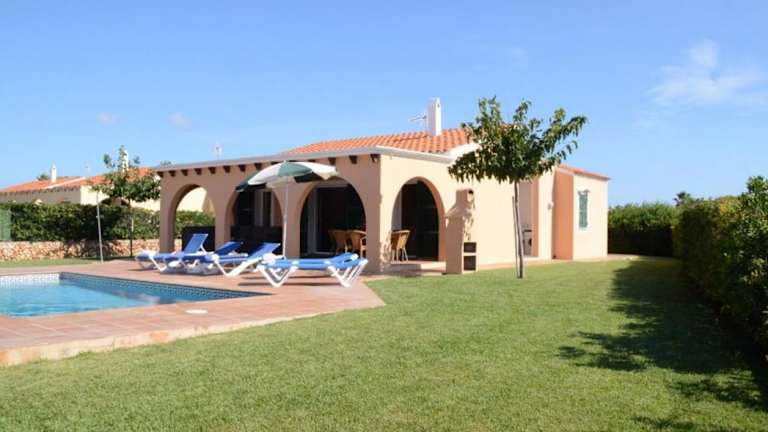 Die Villas Las Golondrinas auf Menorca bieten Ihnen eine ideale Unterkunft, nur 800 m vom Strand Son Xoriguer entfernt. Jede Villa verfügt über einen eigenen Außenpool und eine Terrasse mit Grillplatz. Genießen Sie den Komfort von 3 Schlafzimmern, einem Wohnzimmer, einer voll ausgestatteten Küche und einer Waschküche. Geschäfte, Bars und Restaurants sind nur wenige Gehminuten entfernt und kostenlose Privatparkplätze stehen zur Verfügung. Entdecken Sie die Schönheit von Menorca und besuchen Sie die nahe gelegene Stadt Ciutadella oder den See Lago de Cala en Bosch. Der Flughafen Mahon ist ebenfalls leicht zu erreichen.