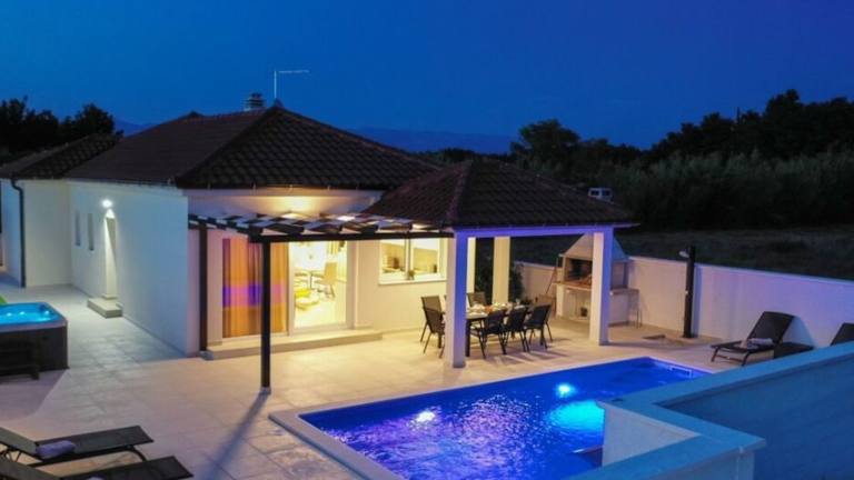Das Villas Sabun ist ein modernes Haus mit beheiztem Pool, das weniger als 1 km vom Strand Selo entfernt liegt. Hier können Sie einen erholsamen Urlaub inmitten einer grünen Oase genießen. Die klimatisierten Unterkünfte verfügen über eine Terrasse, kostenfreies WLAN und einen Flachbild-Sat-TV. Die voll ausgestattete Küche bietet Ihnen alles, was Sie für die Zubereitung Ihrer eigenen Mahlzeiten benötigen. Entspannen Sie sich im Whirlpool oder nutzen Sie den Grill und den Kinderspielplatz. Der Dog Beach Privlaka und der Strand Vrilo sind nur einen kurzen Spaziergang entfernt. Der Flughafen Zadar ist 30 km entfernt.