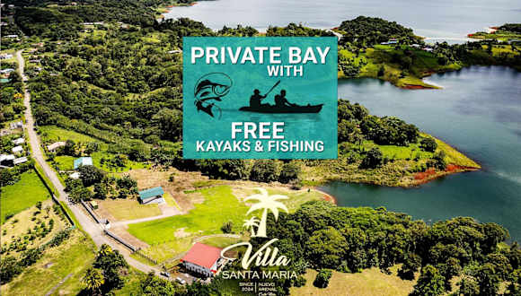 Die Unterkunft befindet sich in Nuevo Arenal, in der Nähe des Wasserfalls La Fortuna, welcher 48 km entfernt liegt. Die Venado-Höhlen sind 21 km von der Unterkunft entfernt. Der nächstgelegene Flughafen ist der Flughafen Fortuna, der sich 56 km von den Villas Santa Maria befindet.