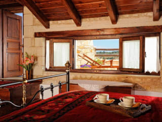 Die Unterkünfte im Strofilia Villas Crete sind luxuriös und einzigartig gestaltet. Die Villen und Studios im Landhausstil sind im Einklang mit der traditionellen Architektur gestaltet und verfügen über Steinwände und Innenhöfe. Jede Unterkunft ist individuell gestaltet und bietet eine gemütliche Atmosphäre. Einige Villen verfügen über einen Kamin im Wohnzimmer, andere über ein Badezimmer mit einer Whirlpool-Badewanne. Bei der Ankunft erhalten Sie einen Begrüßungskorb mit regionalen Produkten und in der Küche jeder Villa finden Sie Getränke, Mineralwasser und Kaffee.