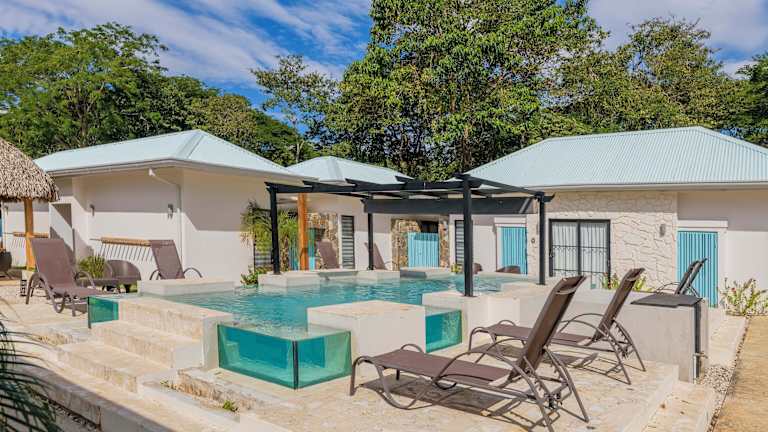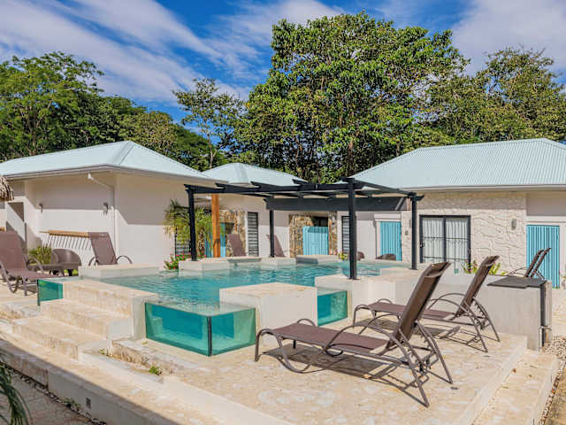 Villas VR Beachwalk Avellanas ist eine Unterkunft, die Übernachtungsmöglichkeiten in klimatisierten Zimmern bietet. Die Unterkunft hilft Gästen gerne mit Informationen und spricht Englisch. Es sind verschiedene Annehmlichkeiten vorhanden, darunter ein Außenpool und eine Terrasse. Ein Privatparkplatz steht den Gästen kostenlos zur Verfügung.