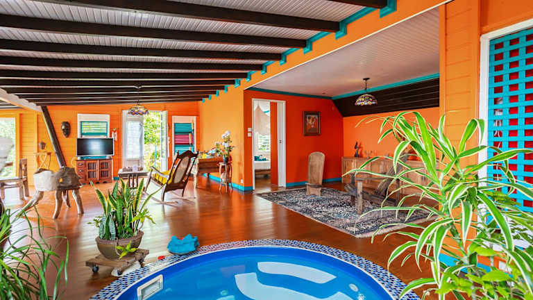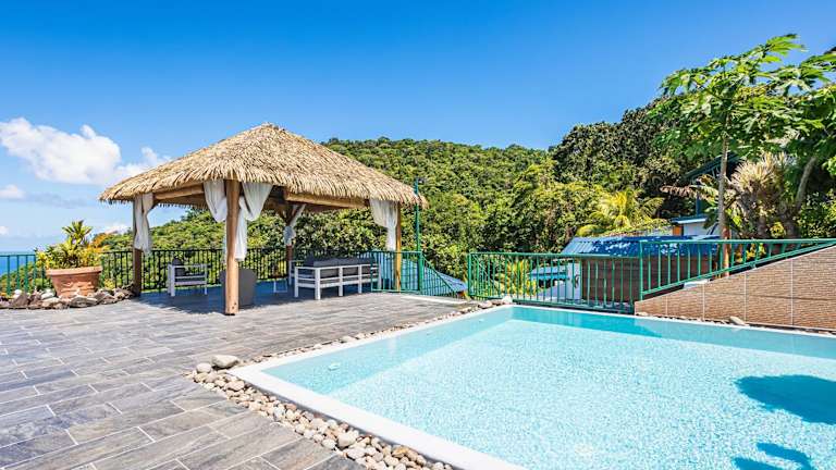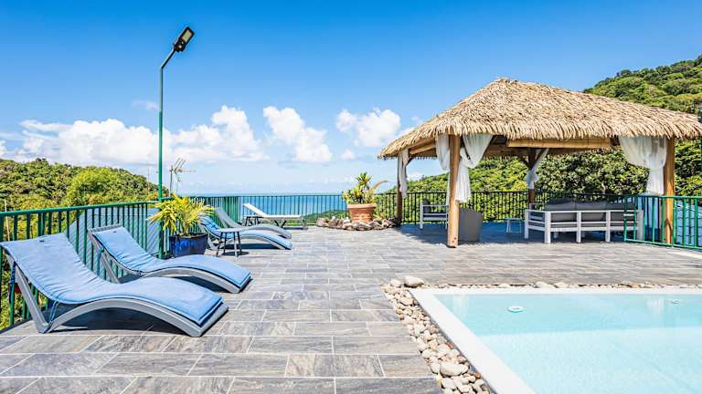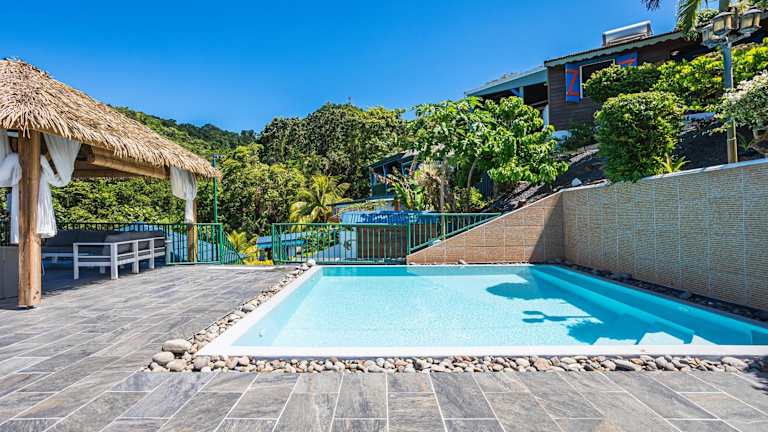 Die Unterkunft Villasticreole bietet Übernachtungsmöglichkeiten mit kostenlosem WLAN und Klimaanlage. Zu den Annehmlichkeiten zählen ein Garten mit einem Außenpool sowie eine Terrasse mit Meerblick.