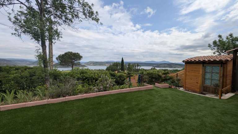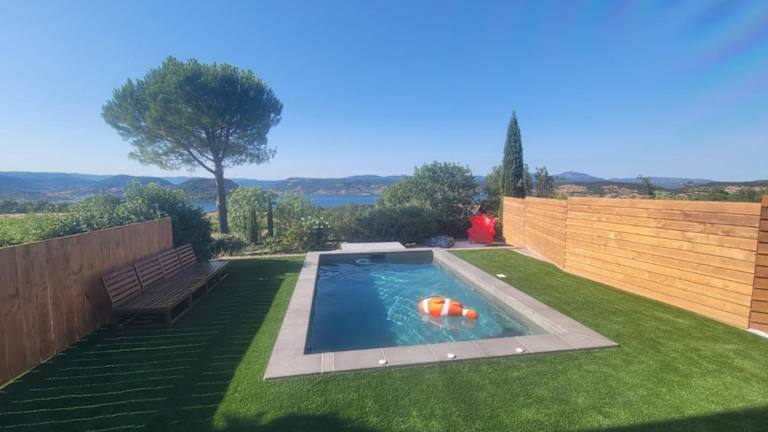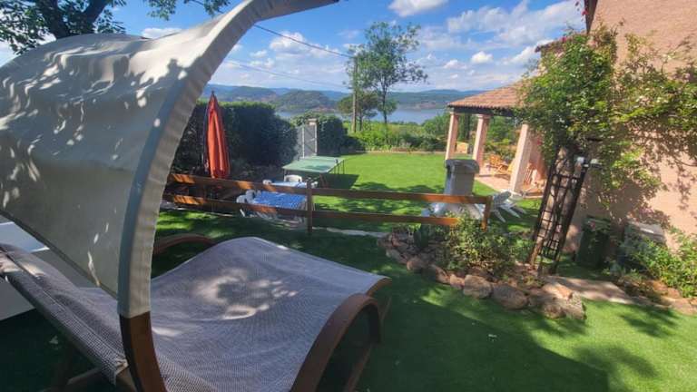 Die Unterkunft VillaT5 Piscine vue Lac du Salagou befindet sich in Liausson, mit Blick auf den Lac du Salagou. Die Umgebung bietet einen Garten und eine Terrasse mit sehenswerter Aussicht.