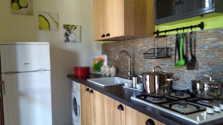 Das Ferienhaus verfügt über zwei Schlafzimmer, ein Wohnzimmer und eine voll ausgestattete Küche, die mit einem Kühlschrank und einem Wasserkocher ausgestattet ist. Das Badezimmer bietet sowohl ein Bidet als auch eine Dusche. Ein Flachbild-TV ist ebenfalls vorhanden. Die Klimaanlage steht in einigen Zimmern zur Verfügung.