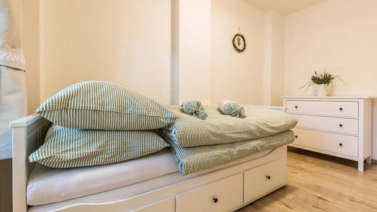 Das Apartment im Vinařství Fiamoli verfügt über 2 Schlafzimmer, ein Wohnzimmer mit einem Flachbild-TV und einen Balkon mit Stadtblick. Die Küche ist mit einem Kühlschrank und einem Geschirrspüler ausgestattet. Das Badezimmer verfügt über eine Dusche. Handtücher und Bettwäsche werden gestellt, um Ihnen den Aufenthalt so angenehm wie möglich zu machen.
