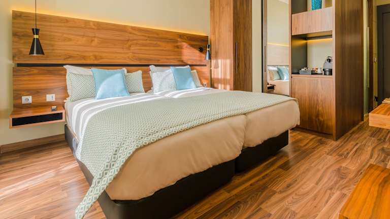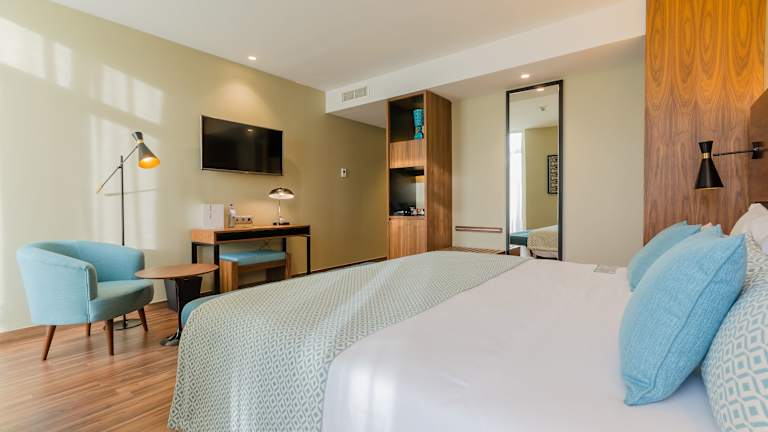 Die Zimmer sind klimatisiert und bieten einen Balkon oder eine Terrasse mit Stadtblick. Zur Ausstattung gehören ein Doppel- oder Kingsize-Bett, ein Safe, eine Minibar, ein Schreibtisch und eine Tee-/Kaffeemaschine. Zudem gibt es einen Fernseher mit Pay-per-View, WLAN und komfortable Badezimmer mit Dusche und Badewanne, die mit Kosmetikartikeln, Haartrocknern und Bademänteln ausgestattet sind. Es sind auch rollstuhlgerechte Zimmer verfügbar.