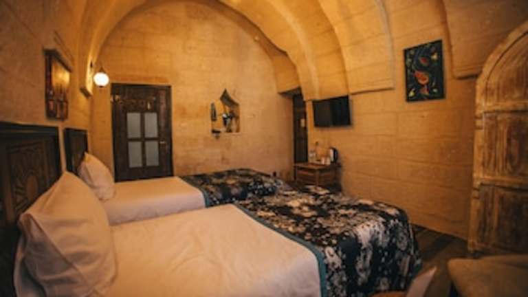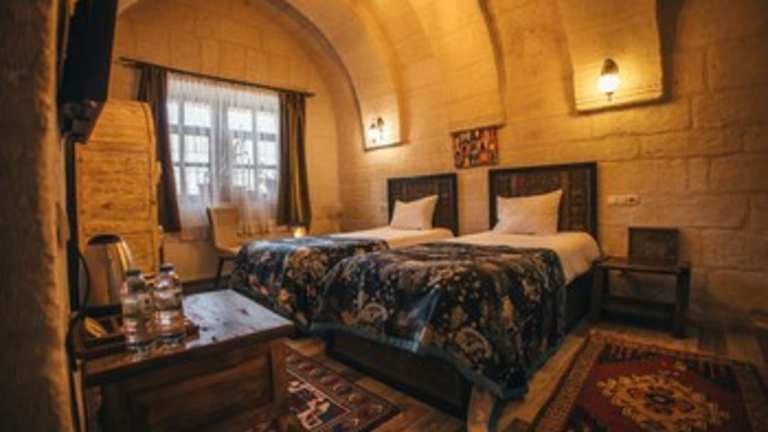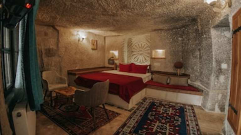 Das Vintage Cave House Hotel befindet sich in Göreme, einer malerischen Stadt in der Region Kappadokien in der Türkei. Die Umgebung ist bekannt für ihre einzigartigen Felsformationen und Höhlenwohnungen. Das Hotel liegt in einer ruhigen Gegend und bietet eine entspannte Atmosphäre für Ihren Aufenthalt. In der Nähe finden Sie verschiedene Sehenswürdigkeiten wie das Schloss Uchisar und das Freilichtmuseum Zelve. Der Flughafen Nevşehir Kapadokya ist nur eine kurze Autofahrt entfernt.