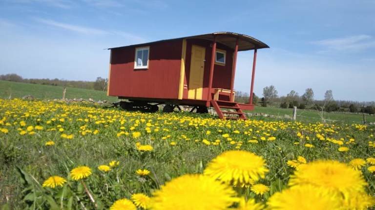 Vintage Cirkusvagn på äng Utedusch och NaturHörby HotelsSüdschweden HotelsRegionenSüdschwedenSchwedenEuropa