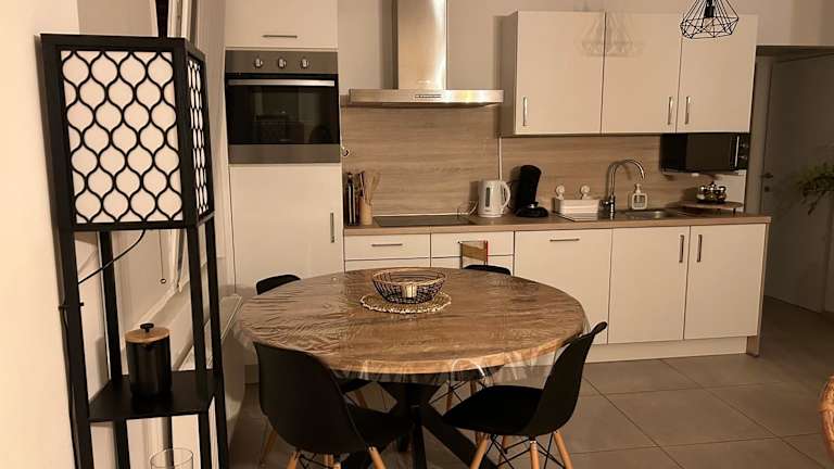 Die Ferienwohnung verfügt über einen Blu-ray-Player und umfasst eine Küche, die mit einem Kühlschrank, einem Geschirrspüler und einem Ofen ausgestattet ist. Das Wohnkonzept bietet ein Schlafzimmer, einen Essbereich sowie ein Badezimmer mit Dusche. Handtücher und Bettwäsche werden bereitgestellt.