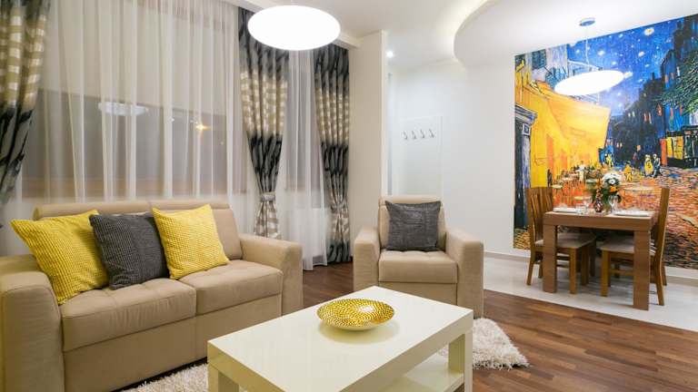 Die Studios bieten eine moderne Ausstattung mit einem Sitzbereich, einem großen Flachbild-TV und einem eigenen Bad. Jedes Studio verfügt über eine Küchenzeile und einen Essbereich.