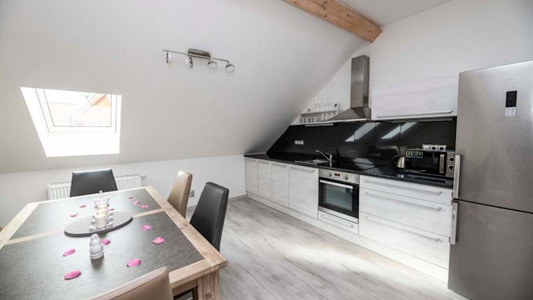 Die Wohneinheiten im VIP Suite Hotel Heinz sind gut ausgestattet und bieten den Gästen alle Annehmlichkeiten, die sie für einen komfortablen Aufenthalt benötigen. Jede Wohneinheit verfügt über eine voll ausgestattete Küche mit Kühlschrank, ein gemütliches Wohnzimmer mit Schlafsofa und Flachbild-TV sowie ein eigenes Badezimmer. Ein Backofen, ein Geschirrspüler und ein Wasserkocher sind ebenfalls vorhanden.