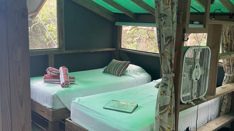 Genießen Sie den atemberaubenden Meerblick von der Terrasse des Virgin Islands Campgrounds auf Water Island. Dieser Campingplatz bietet eine Suite mit einer Küchenzeile und einem eigenen Bad sowie einen kostenlosen Shuttleservice zum und vom Fähranleger Water Island. Schnorchelausrüstung und Golfwagenverleih stehen Ihnen zur Verfügung, um die Insel zu erkunden und das Beste aus Ihrem Aufenthalt zu machen.