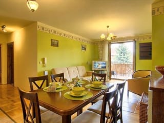 Die Rocky Apartments im VisitZakopane sind gemütlich und geschmackvoll eingerichtet. Die hellen Zimmer sind in warmen Pastellfarben gehalten und mit Holzmöbeln und Parkett ausgestattet. Jedes Zimmer verfügt über einen TV, einen CD- und DVD-Player sowie ein eigenes Badezimmer mit einer Badewanne oder einer Dusche. Die Apartments zur Selbstverpflegung bieten zudem eine Küchenzeile mit einem Kühlschrank, einer Mikrowelle und einem Geschirrspüler. Es gibt auch einen geräumigen Essbereich, in dem Sie Ihre Mahlzeiten genießen können.