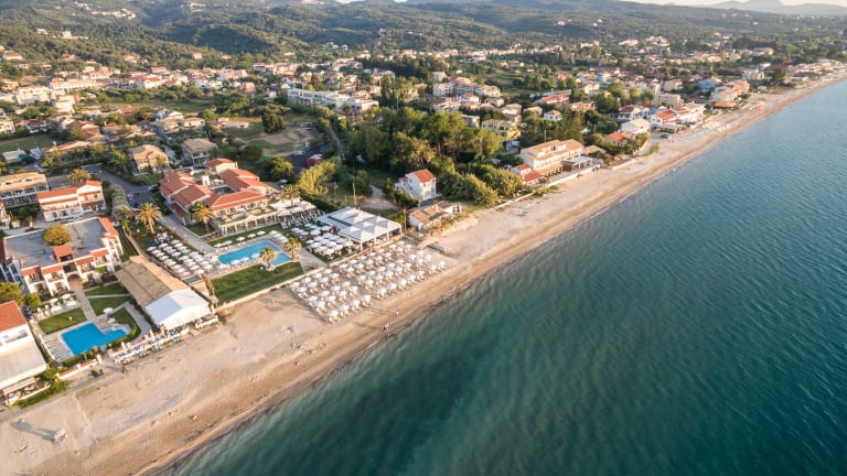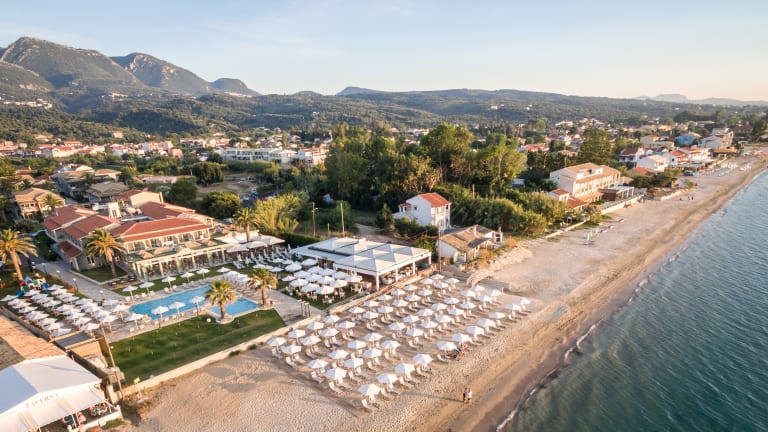 Die im Sommer 2019 neu eröffnende Hotelanlage buchbar und befindet sich in ruhiger Lage direkt neben dem Schwesterhotel Acharavi Beach. Zum langen, flach abfallenden Sand-/Kiesstrand sind es nur wenige Meter. Das Zentrum von Acharavi mit Einkaufs- und Unterhaltungsmöglichkeiten ist ca. 500 m entfernt, Korfu-Stadt und der Flughafen ca. 36 km. Ausstattung: Das moderne Ferienhotel verfügt über insgesamt 33 Zimmer, die sich auf 3 Gebäude verteilen. In der gepflegten Gartenanlage laden der große Pool mit Sonnenterrasse, ein separater Kinderpool, eine schöne Poolbar und eine separate Snackbar sowie ein Loungebereich mit komfortablen Sofas zum Verweilen ein. Sonnenliegen und Schirme sind am Pool inklusive, am Strand gegen Gebühr. Wi-Fi ist in der gesamten Anlage kostenfrei. Der Check-in erfolgt im benachbarten Acharavi Beach Hotel, weiterhin können auch sämtliche Einrichtungen und Annehmlichkeiten des Schwesterhotels mitgenutzt werden. Alle Mahlzeiten werden im Restaurant des Acharavi Beach Hotel eingenommen.