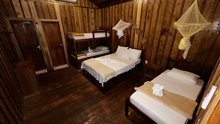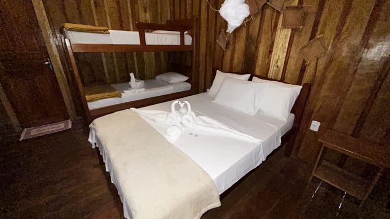 Die Zimmer in der Vista do Lago Jungle Lodge verfügen alle über ein eigenes Bad und bieten den Gästen Komfort und Privatsphäre. Die Einrichtung ist gemütlich und lädt zum Entspannen ein.
