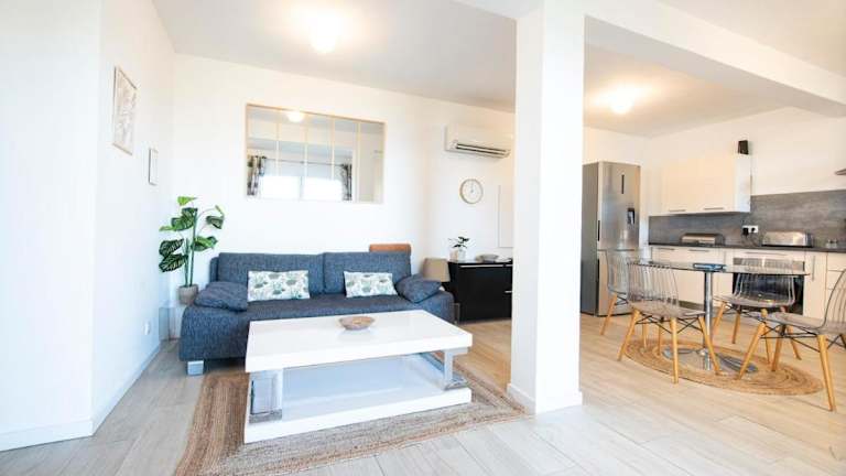 Die Unterkunft verfügt über ein Schlafzimmer und ist ausgestattet mit einer Küche, die einen Kühlschrank und einen Geschirrspüler umfasst. Zur weiteren Ausstattung gehören ein Flachbild-TV, ein Sitzbereich sowie zwei Badezimmer mit Duschen. Die klimatisierte Wohnung bietet zudem eine Terrasse und einen Balkon.