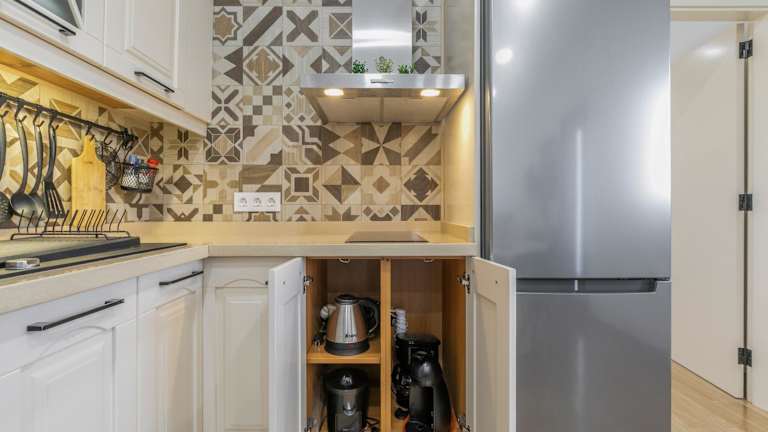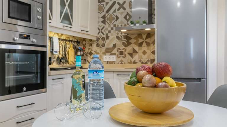 Die Unterkunft verfügt über eine gut ausgestattete Küche mit einem Kühlschrank und Geschirrspüler, die es ermöglicht, eigene Mahlzeiten zuzubereiten. Weitere Verpflegungsmöglichkeiten sind nicht angegeben.