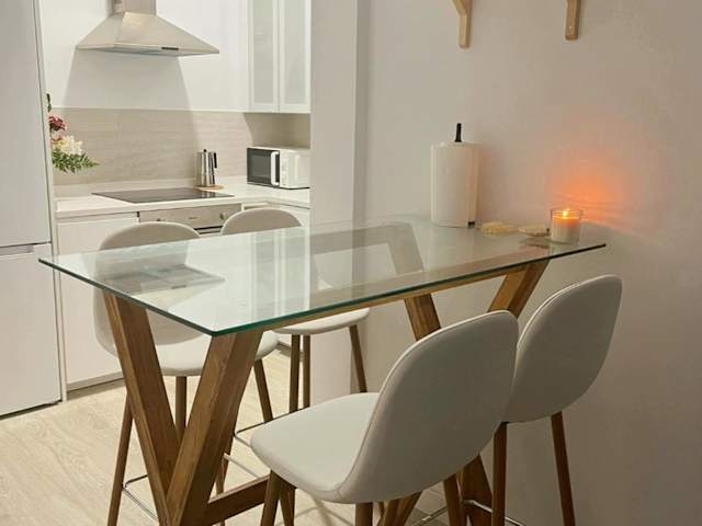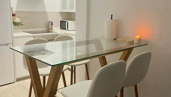 Die Ferienwohnung verfügt über eine voll ausgestattete Küche mit einem Essbereich, in der das Zubereiten von Mahlzeiten möglich ist. Es sind keine Informationen über zusätzliche Verpflegungsmöglichkeiten vorhanden.