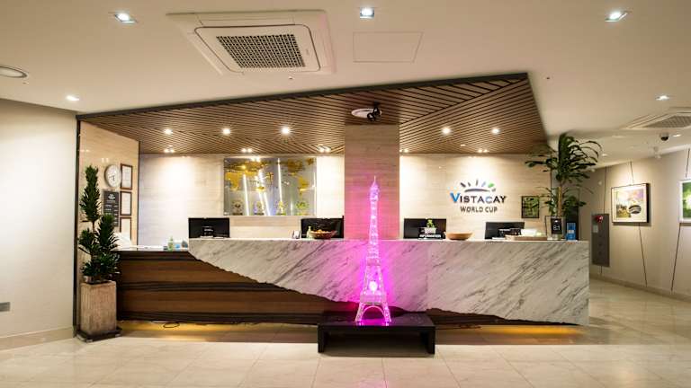 Das Vistacay Hotel Seogwipo ist ein modernes Hotel mit einer günstigen Lage in Seogwipo. Es bietet komfortable Zimmer, einen saisonalen Außenpool und kostenfreies WLAN. Das freundliche Personal steht Ihnen rund um die Uhr zur Verfügung und das Hotel verfügt über Annehmlichkeiten wie eine Gepäckaufbewahrung und ein Businesscenter. Genießen Sie einen angenehmen Aufenthalt in diesem Hotel, das nur eine kurze Fahrt von Sehenswürdigkeiten wie dem Jeju-World-Cup-Stadion und dem Wasserfall Cheonjiyeon entfernt liegt.