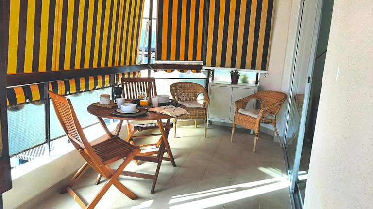 Die Ferienwohnung umfasst zwei Schlafzimmer und ein Badezimmer. Zudem sind ein Flachbild-TV, ein Essbereich sowie eine vollständig ausgestattete Küche vorhanden. Eine Terrasse mit Meerblick ergänzt die Ausstattung und sorgt für eine angenehme Atmosphäre.